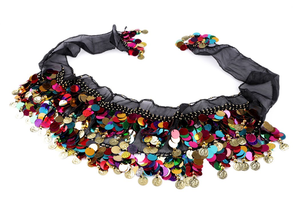 Šátek s penízky zná každá břišní tanečnice. Zavazuje se okolo boků, přizpůsobí se každé postavě.