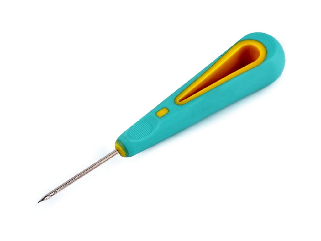 Díky ostré špičce se kůže lehce probodává. Šídlo má plastovou rukojeť, která se dobře drží v ruce. Průměr jehly č. 1 je 1,6 mm. Průměr jehly č. 2 je 2,3 mm.