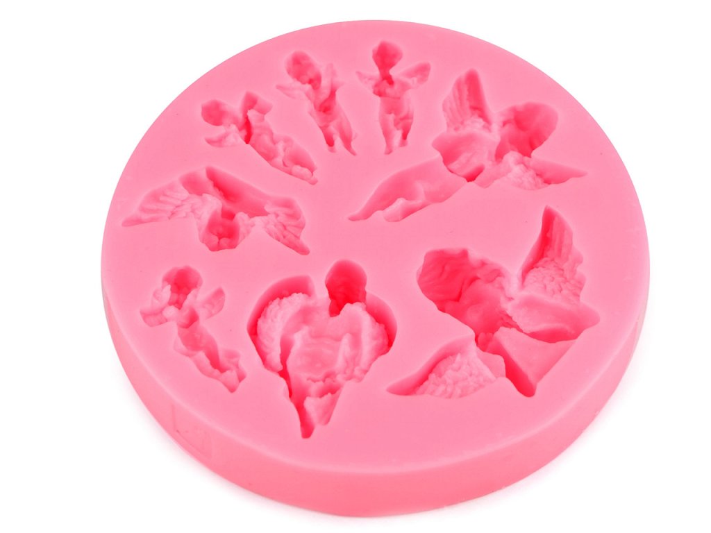 Silikonová forma s andělíčky je vhodná pro hobby techniky. Hodí se na odlévání pryskyřice, UV pryskyřice, sádry, mýdlové hmoty apod.