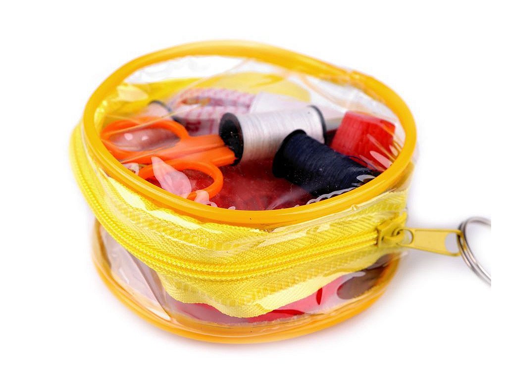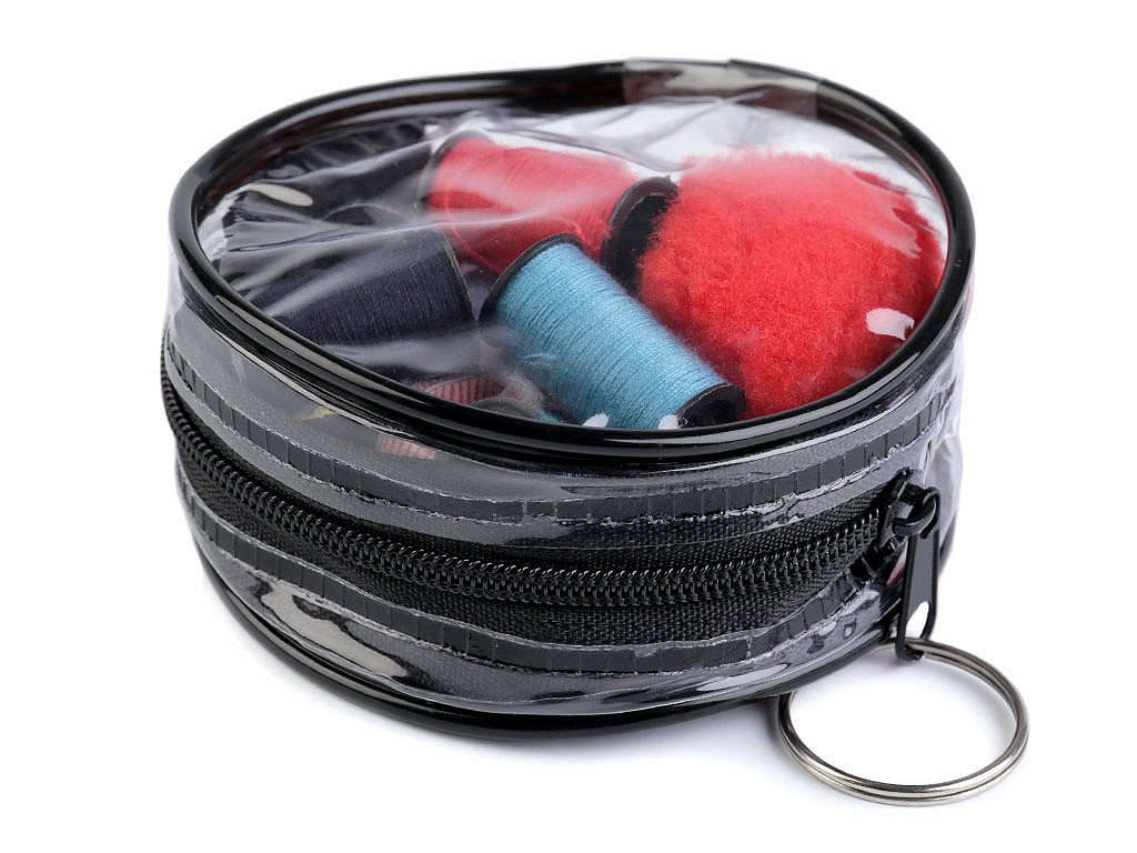 Velmi praktické šitíčko v průhledné taštičce o průměru 7,5 cm se zipovým zapínáním.