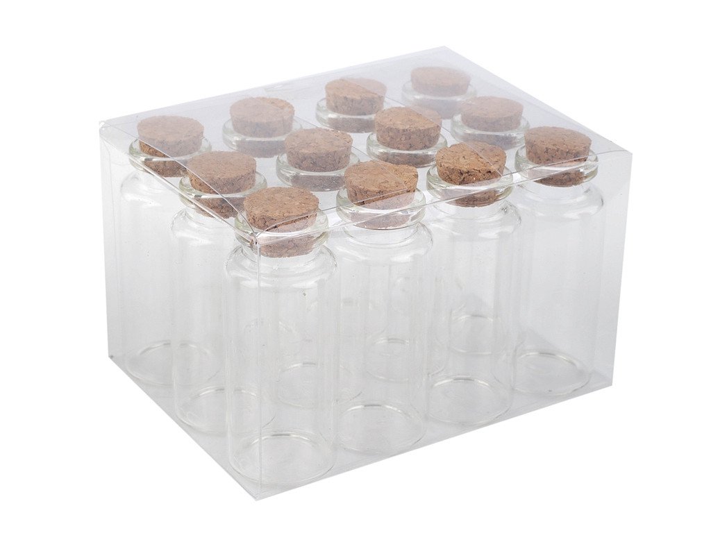 Originální balení 12 ks prodáváme v průhledné plastové krabičce o rozměrech 80 x 90 x 120 mm. Vnitřní průměr otvoru lahvičky je 16 mm, vnější je 23 mm.