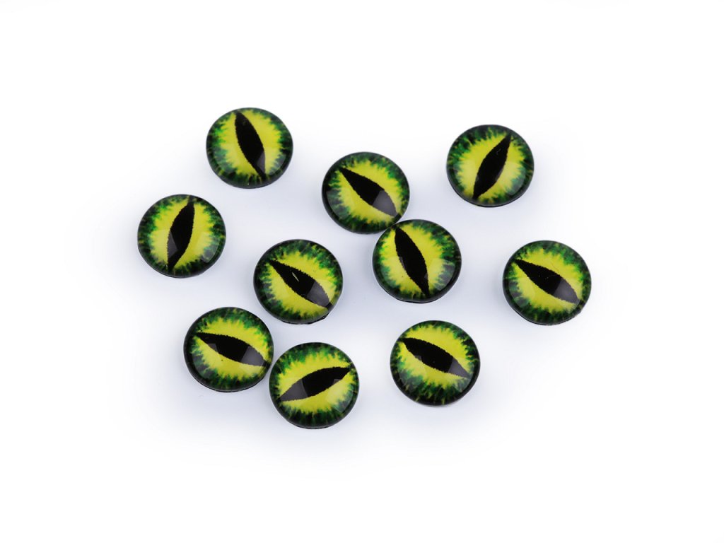 Skleněné oči k nalepení kočka, drak Ø10 a 12 mm - 10ks