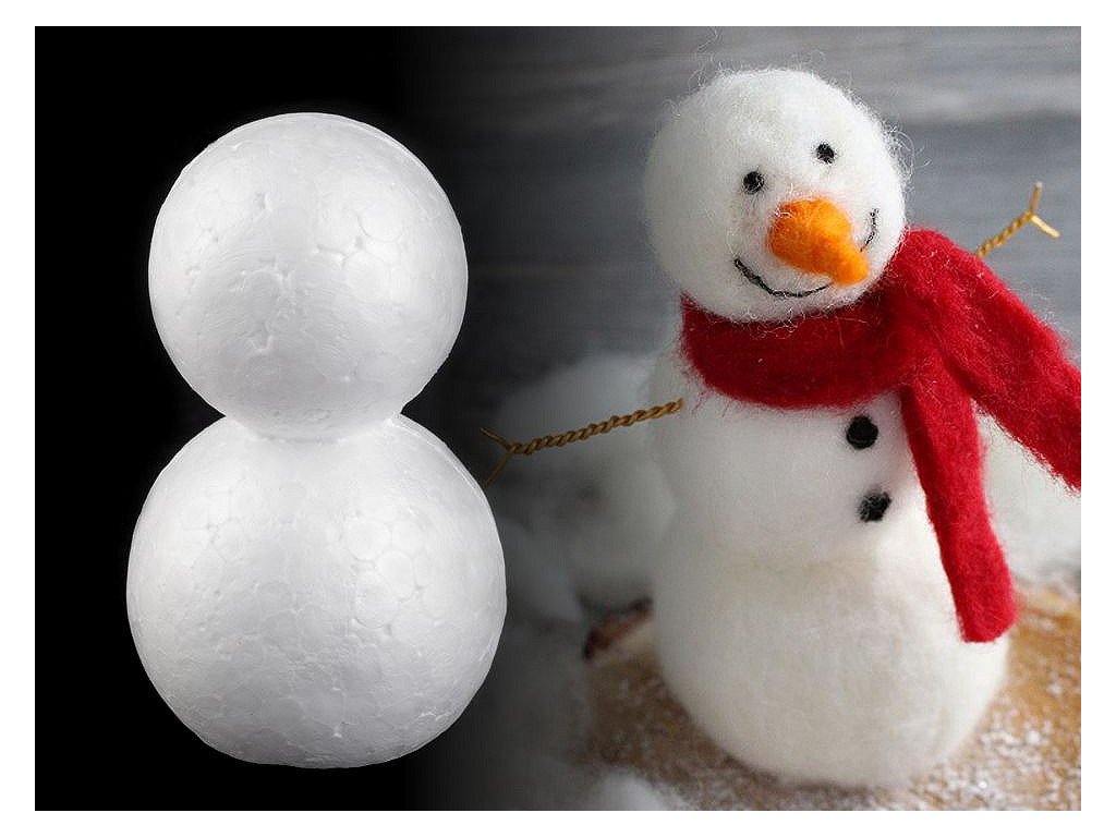 Polystyrenový model sněhuláka je vhodný na nešitý patchwork, k pomalování barvami nebo na ubrouskovou techniku decoupage.