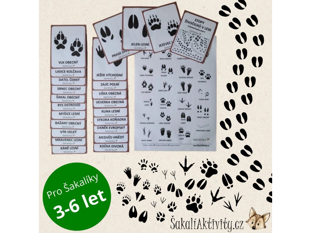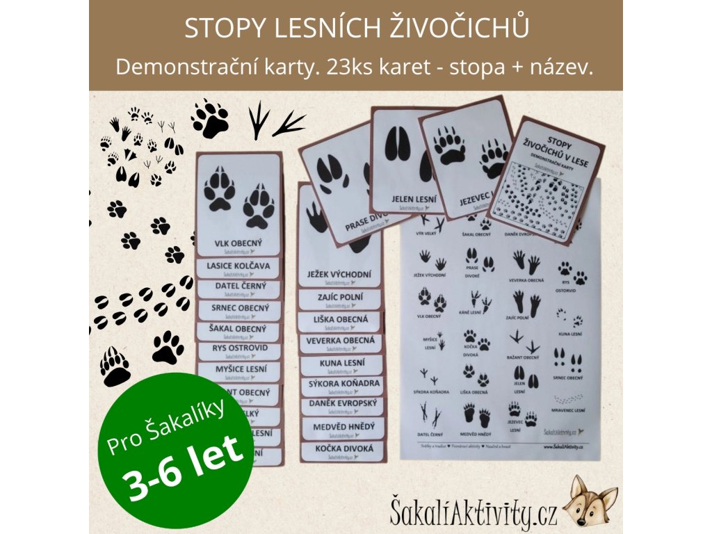 Demonstrační karty se stopami lesních zvířat nadchnou každého malého badatele i pedagoga! Děti se pomocí reálných fotografií naučí rozpoznávat 24 stop různých lesních živočichů – od lišky přes jezevce až po srnku. Každá karta obsahuje reálný obrázek a název zvířete.