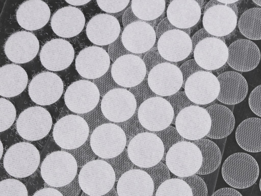 Suchý zip ve tvaru koleček slouží ke spojení různých materiálů.