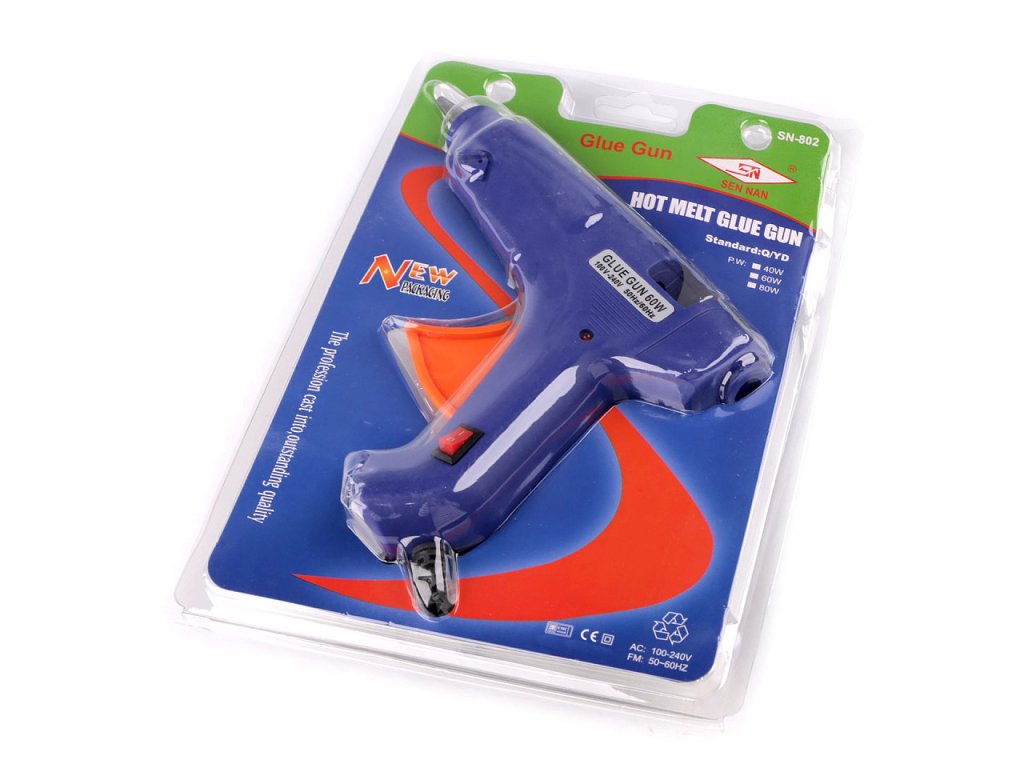 Na konci rukojeti má dvoupolohový přepínač, kterým se pistole zapne a vypne. Pistole se zapojuje do elektřiny. Při práci s ní zacházejte opatrně, protože její tryska je horká. Rozehřátou pistoli odkládejte na stojánek umístěný v její přední části. Lepte pouze s dobře rozehřátou pistolí, pokud není lepidlo tekuté, může při tlačení na píst dojít k jejímu poškození.