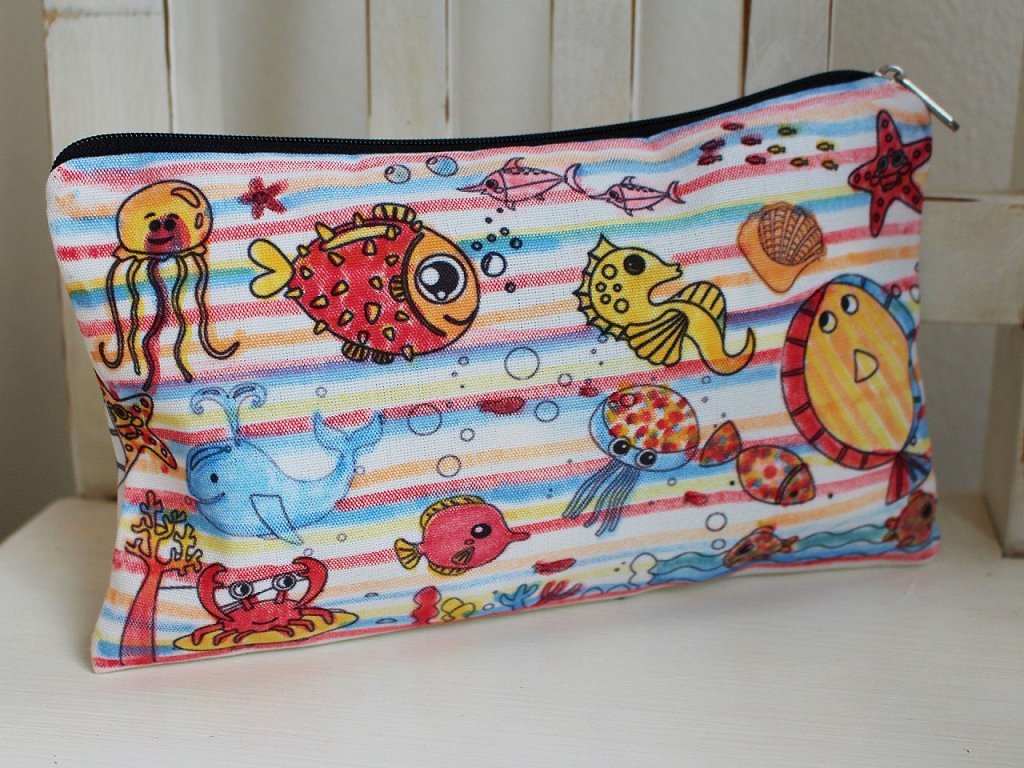 Textilní pouzdro má využití doma i na cestách. Z obou stran má potisk, který můžete domalovat nejlépe popisovači a barvami na textil.