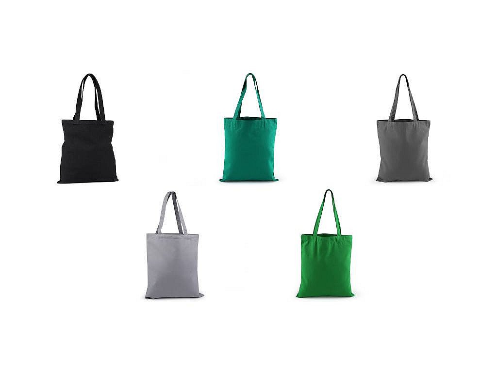 Textilní bavlněná taška je z pevného hrubého materiálu. Nemá podšívku, je vhodná na běžné nákupy.