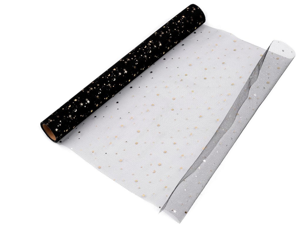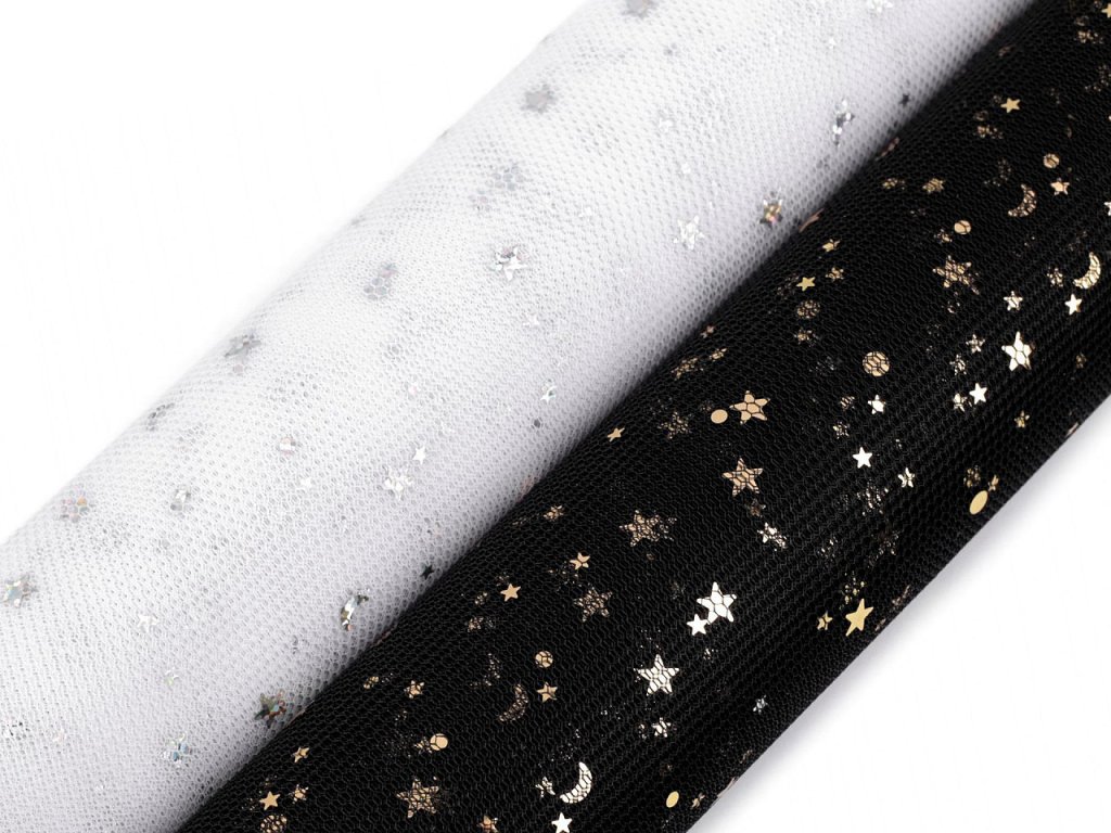 Průhledný tyl zdobí metalické hvězdičky a měsíčky.