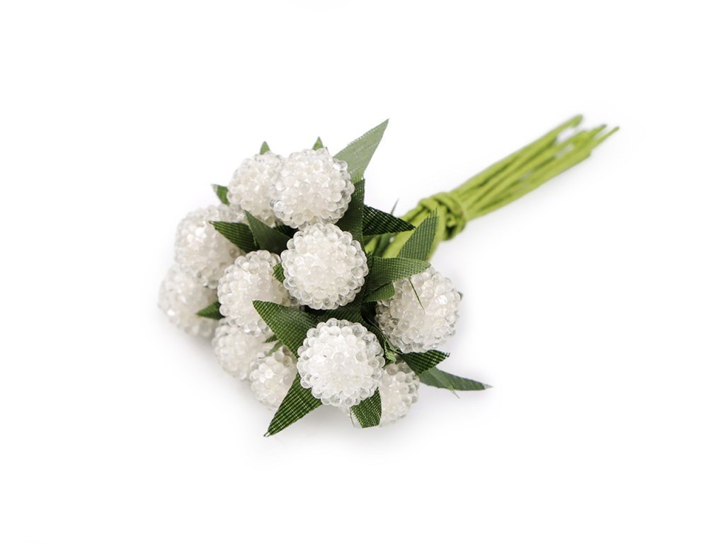 Dekorační bobule jsou ozvláštněné drobnými transparentními kuličkami, které vypadají jako led.