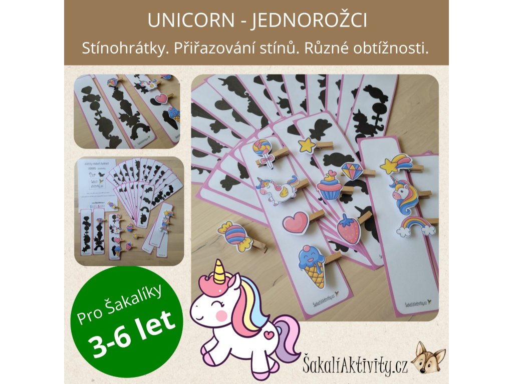 Přiřazování stínů – jednorožci je hravá aktivita, která děti zabaví a zároveň podpoří jejich rozvoj. Úkoly jsou zaměřené na procvičování postřehu, jemné motoriky, schopnosti přiřazování i práci podle předlohy. Vhodná je především pro děti mladšího a předškolního věku, ale své využití najde také v prvním ročníku ZŠ.