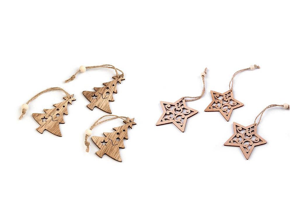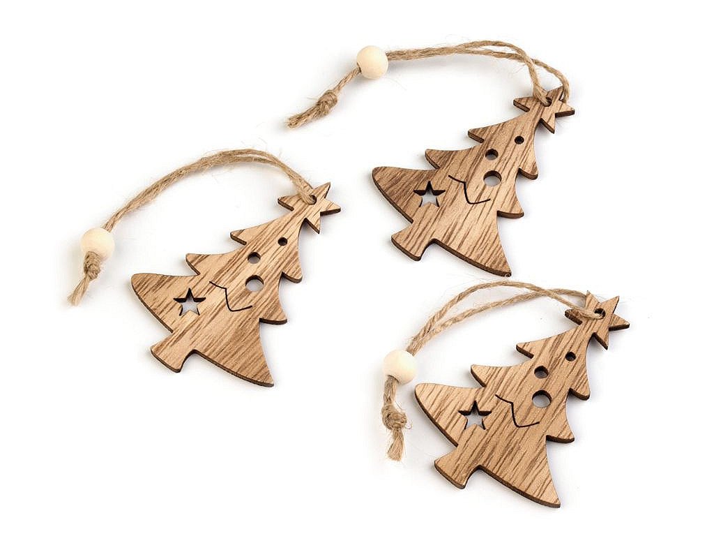 Dřevěné vánoční dekorace mají přírodní dřevěný povrch s krásnou přirozenou strukturou.