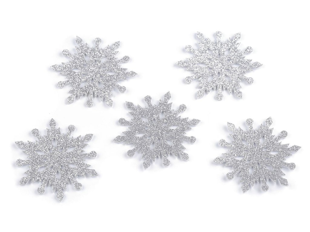 Filcové vločky zdobí z jedné strany třpytivé glitry. Druhá strana je filcová.