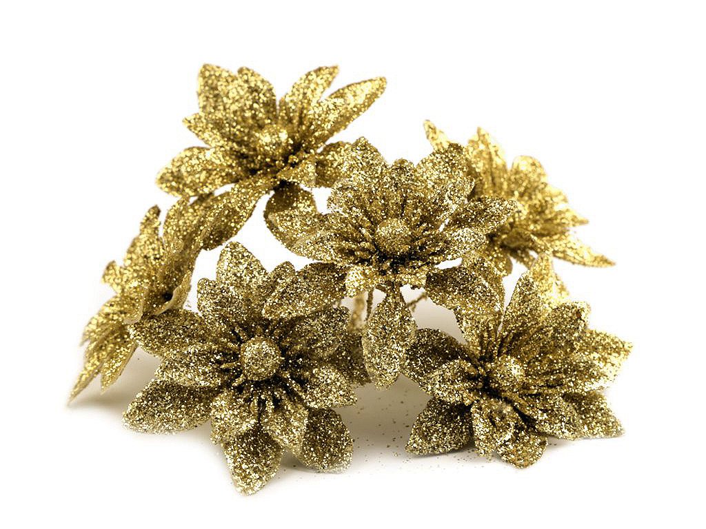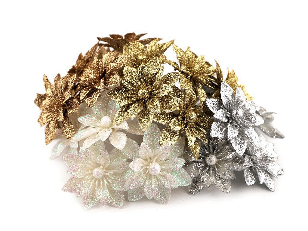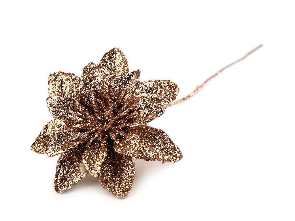 Jejich povrch se třpytivými glitry dodá vašemu domovu nádech elegance a luxusu. Květy vánoční hvězdy jsou připevněny k ohebnému drátku, kterým lze lehce manipulovat.