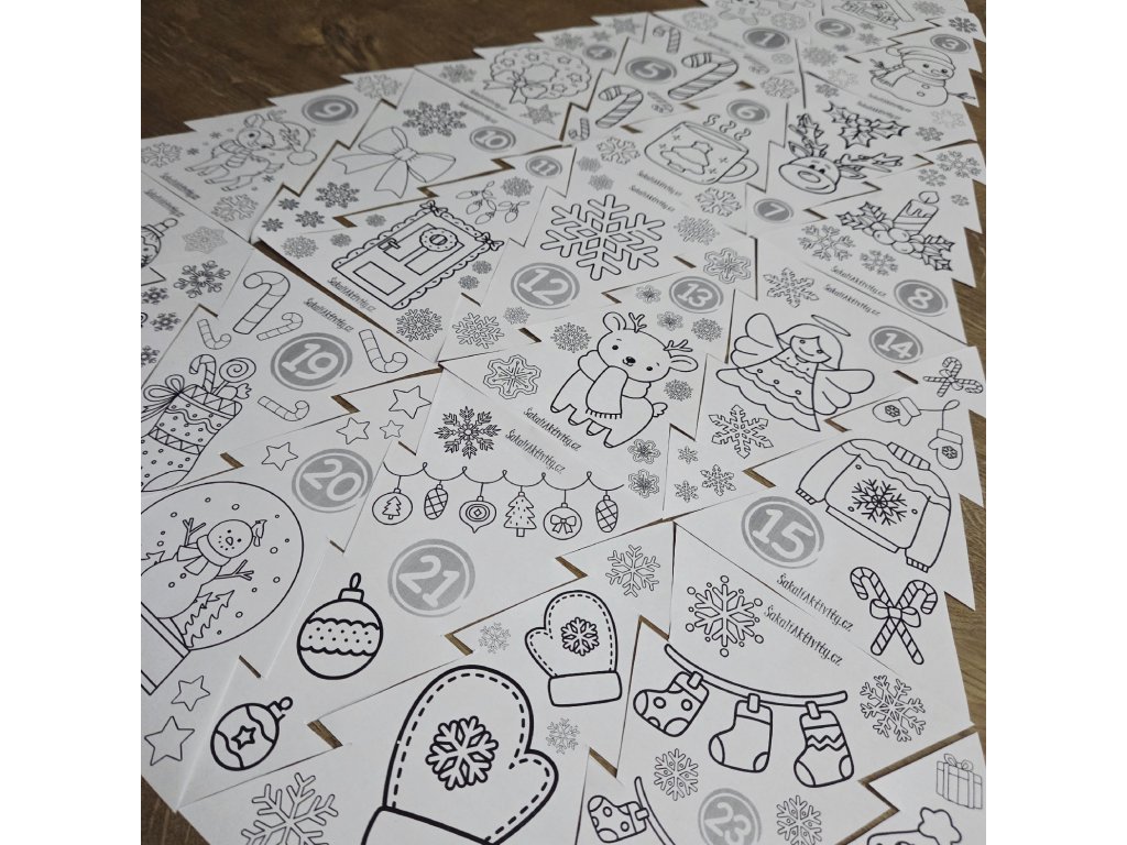 Na ŠakalíAktivity.cz nabízíme adventní kalendáře pro děti k vytištění i vybarvení – barevné i omalovánkové varianty, které si mohou děti samy vytvořit. Každý kalendář umožňuje zaznačování kolíčkem nebo otočnou šipkou, takže dítě samo sleduje, jak ubíhá adventní čas. Tyto materiály rozvíjejí samostatnost, tvořivost a radost z každodenního očekávání Vánoc.