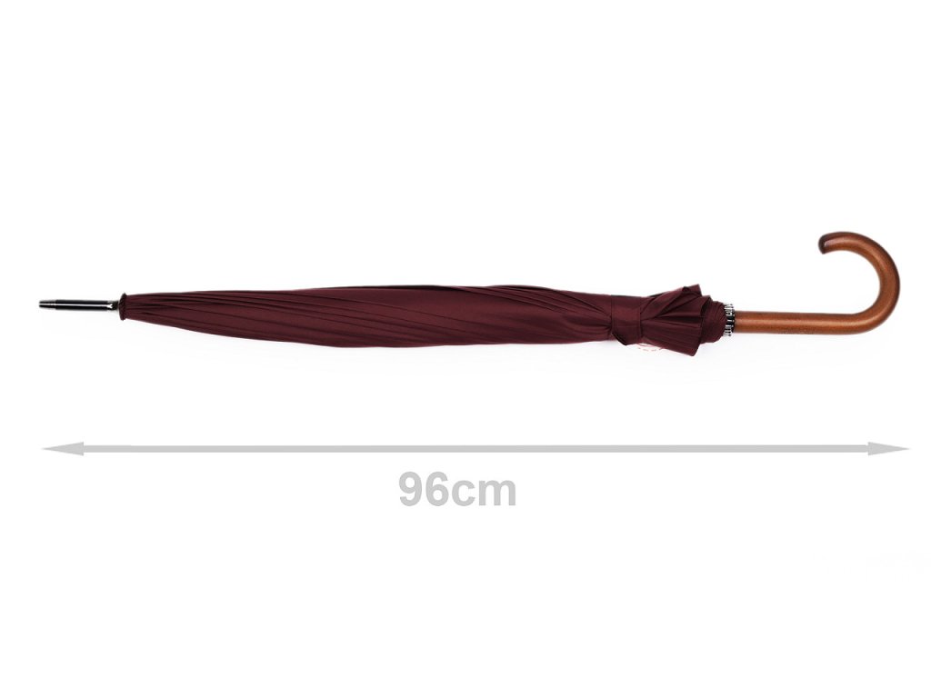 Velký luxusní deštník s průměrem 113 cm je vhodný jako deštník pro dva (rodinný deštník). Je vystřelovací, má klasickou tyč zakončenou pevnou dřevěnou rukojetí.