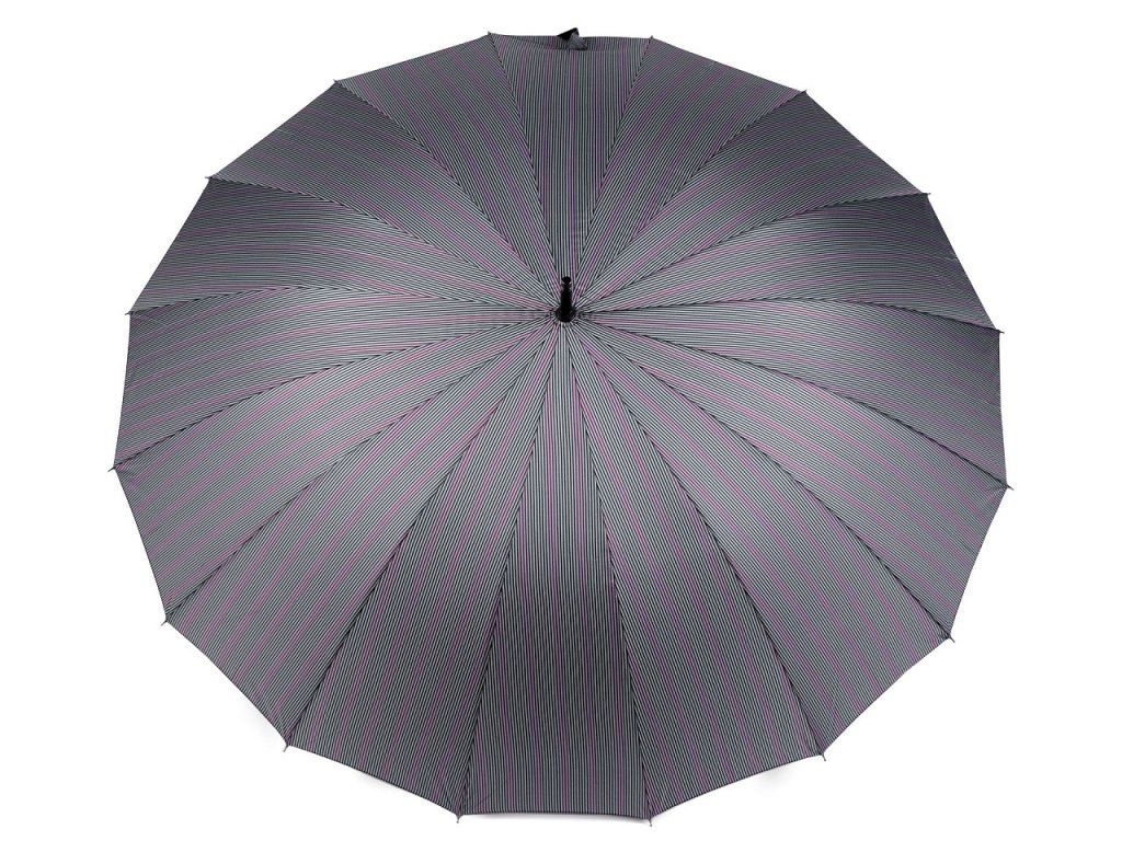 Velký vystřelovací deštník vás spolehlivě ochrání před nepřízní počasí. Skládá se z 16 polí. Díky jeho velkému průměru 117 cm je vhodný jako deštník pro dva (rodinný deštník).
