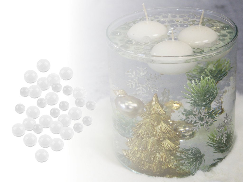 Nasáknou vodu a zadrží ji po dobu 30 dní. Hodí se nejen pro čerstvé květiny, ale i pro hydrokulturu a odnože k přesazení. Po nabobtnání jsou kuličky ve vodě téměř průhledné. Voda s kuličkami působí na pohled jako křišťál.