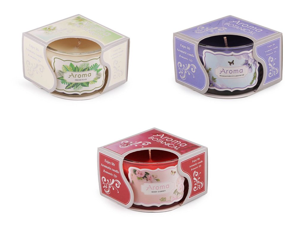 Vůně svíček najdete popsané u variant zboží. Hmotnost vosku je 80 g.