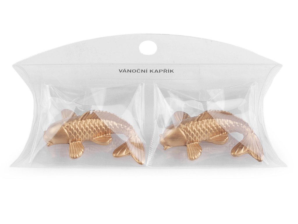Malý zlatý kapřík elegantně ozdobí sváteční tabuli, ale můžete ho také nalepit na věnce, krabičky či ho zakomponovat do vánočního aranžmá.